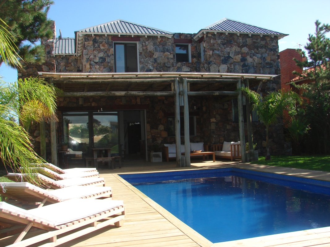 Located in the most exclusive neighborhood in Uruguay, Punta del Este. This stunning villa located by the sea, with views of the Atlantic. Beachfront house in the resort Uncle Tom. It takes place on several levels, providing ample public spaces and independence. It has 5 bedrooms (3 en suite and 2 sharing a bathroom), spacious living room, dayroom with TV, kitchen with access to barbecue, deck with pool, outdoor room that provides another space independent of the main house, the same has a bedroom, bathroom and living room with TV. Very well equipped, A / C split in all rooms, underfloor sectioned, special enclosures, beautiful terrace with amazing ocean views from the master suite. Armored Glass and alarm. 5 bedrooms, 3 en suite 5 bathrooms underfloor heating throughout the house. Dep 2 parking service emergency lighting 300 m2 built 750 m2 lot.